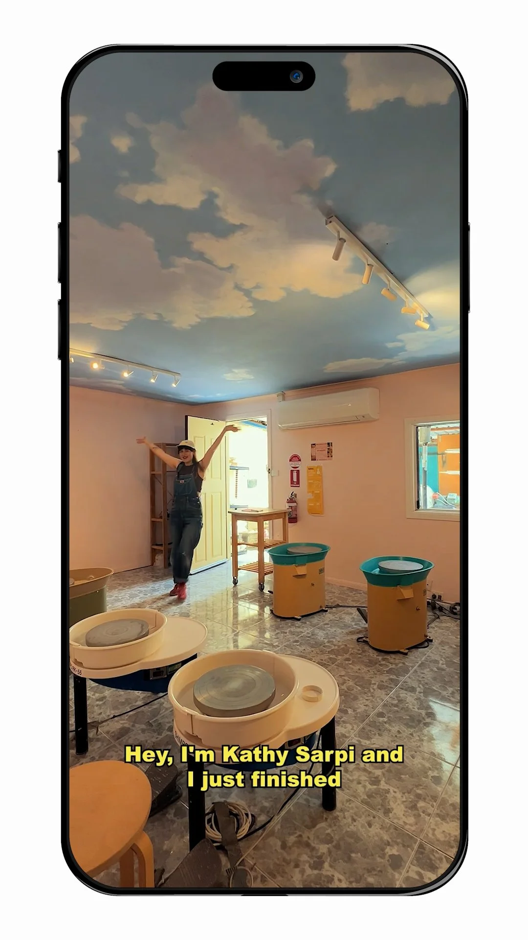 Artist Kathy Sarpi painted a dreamy sky mural in Pink Ember’s wheel-throwing room. To reveal it on social media, I edited this content piece for Pink Ember, where Kathy shares her creative process and unveils the final mural.